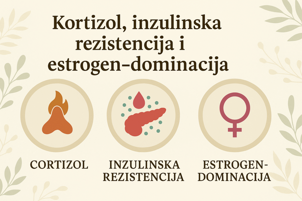 Kortizol → smanjuje progesteron → povećava estrogensku dominaciju → pojačava inzulinsku rezistenciju → inzulin stimulira aromatazu → još više estrogena → upala i stres → povratak na početak.